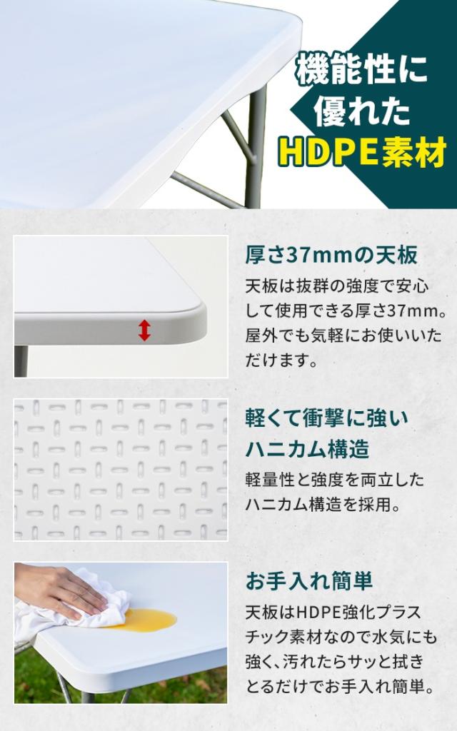 ・強化プラスチック(HDPE)天板で軽量かつ丈夫
