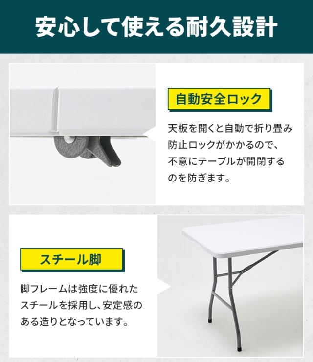 | [使用時]幅180×奥行74×高さ73.5cm [折畳時]幅91.5×奥行74×厚さ7.5cm[天板サイズ]幅180×奥行74×厚さ3.7cm |