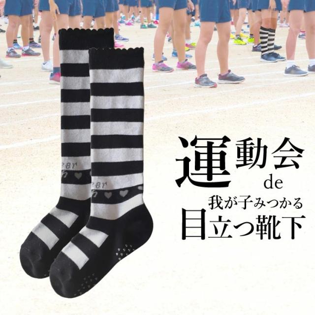 運動会で我が子見つかる 靴下(ハイソックス・クルーソックス) 女の子用 キッズ・ジュニア 白黒 ボーダー【送料無料】