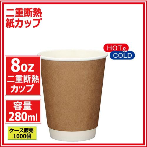 【送料無料】二重断熱紙カップ8オンス クラフト 280ml 1000個_業務用_紙コップ 耐熱_ホット用_コーヒー_テイクアウト