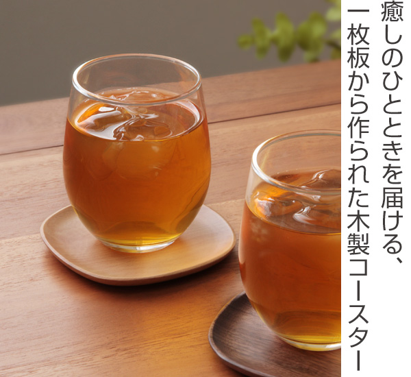 ナチュラルな色味の木製コースター 10×10cm