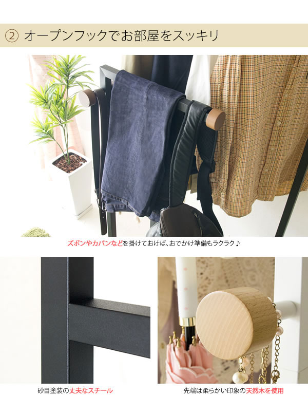 デザイン性と機能性にこだわったマルチハンガーラックは衣類の他に、