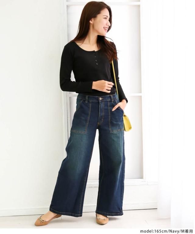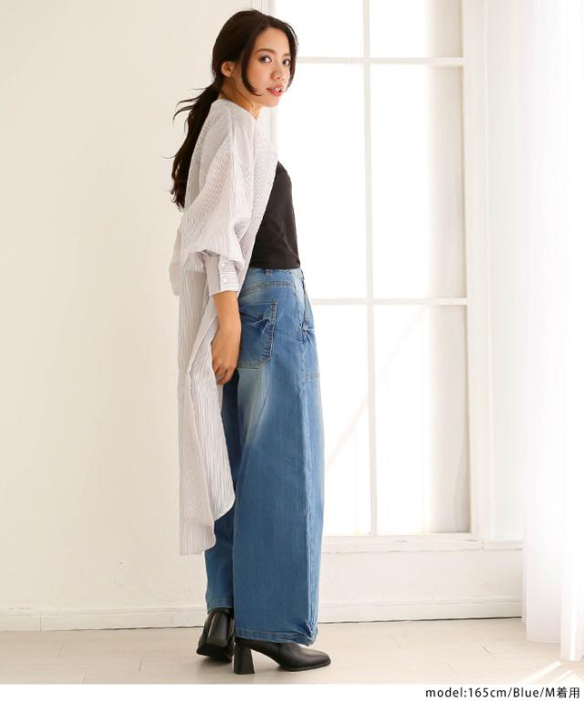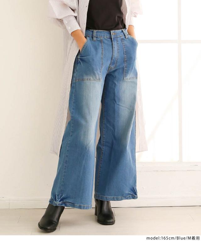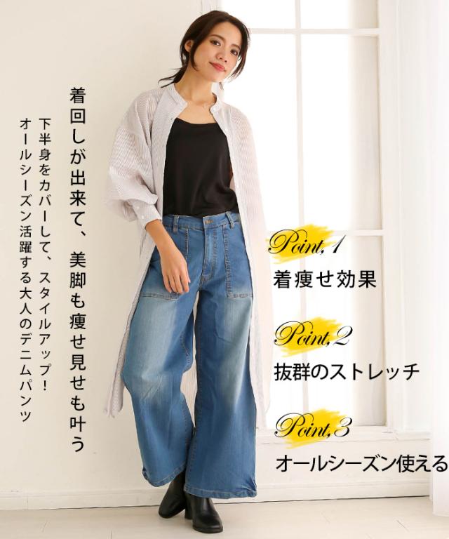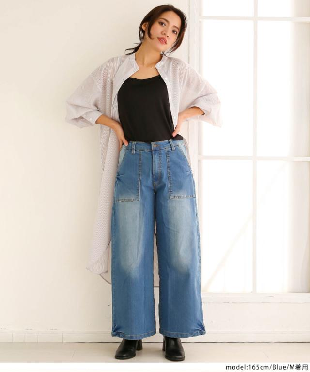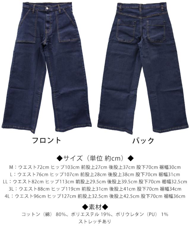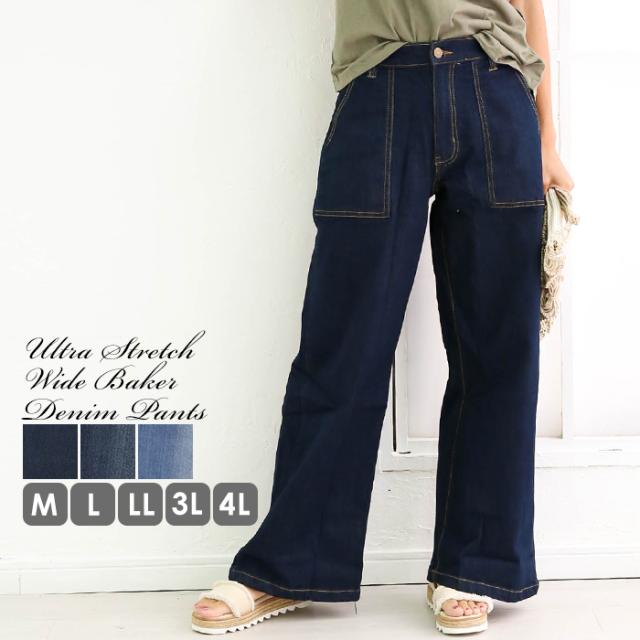秋新作 大きいサイズ レディース デニムワイドベイカーパンツ ストレッチ デニム 春 夏 カジュアル ワイドパンツ ジーンズ ボトムス パンツ バギーパンツ M L XL XXL LL 3L 4L