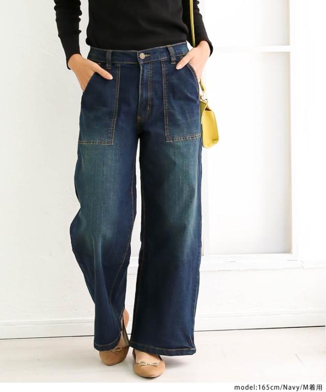 ツイルとデニムから選べる!!ワイドベイカーパンツが登場。裾に向けてストンと落ちるワイドシルエットがトレンド感◎美脚効果も期待できて、厚手すぎないさらっとした素材は履き心地も抜群。M〜4Lまでの豊富なサイズ展開も嬉しいポイント♪