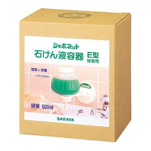 ▼3980円以上送料無料 (但し沖縄県、離島などは別途送料負担があります) サラヤ シャボネット 容器E型接着用(液剤は入っていません)は押上式の石けん液容器。チョウナットを締めるだけで簡単に蛇口に取り付け可能。幅×奥行×高さ(mm):149×109×170 容量(ml):500 【4973512214530】
