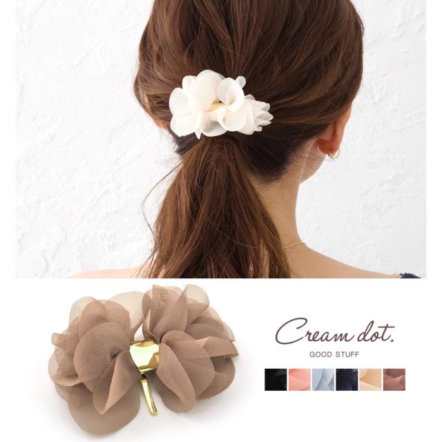柔らかなシフォン生地を花びらのように何枚も重ねた立体感のあるポニーフック。