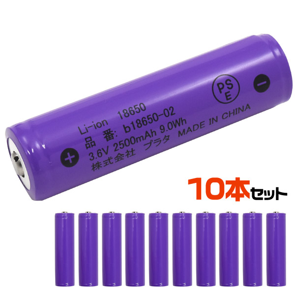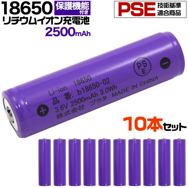 10本セット 充電池 18650型 リチウムイオン充電池 2500mAh バッテリー PSEマーク認証 ボタントップ 保護回路付き 長持ち設計 3.6V
