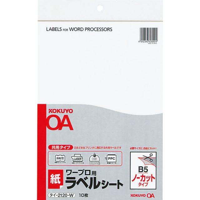 【メール便発送】コクヨ ワープロ用 紙ラベル 共用タイプ B5 ノーカット 10枚 タイ-2120-W