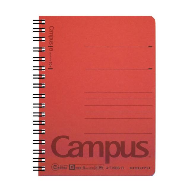 【メール便発送】コクヨ キャンパス ツインリングノート A6 B罫 50枚 赤 ス-T158B-R 〔1冊〕
