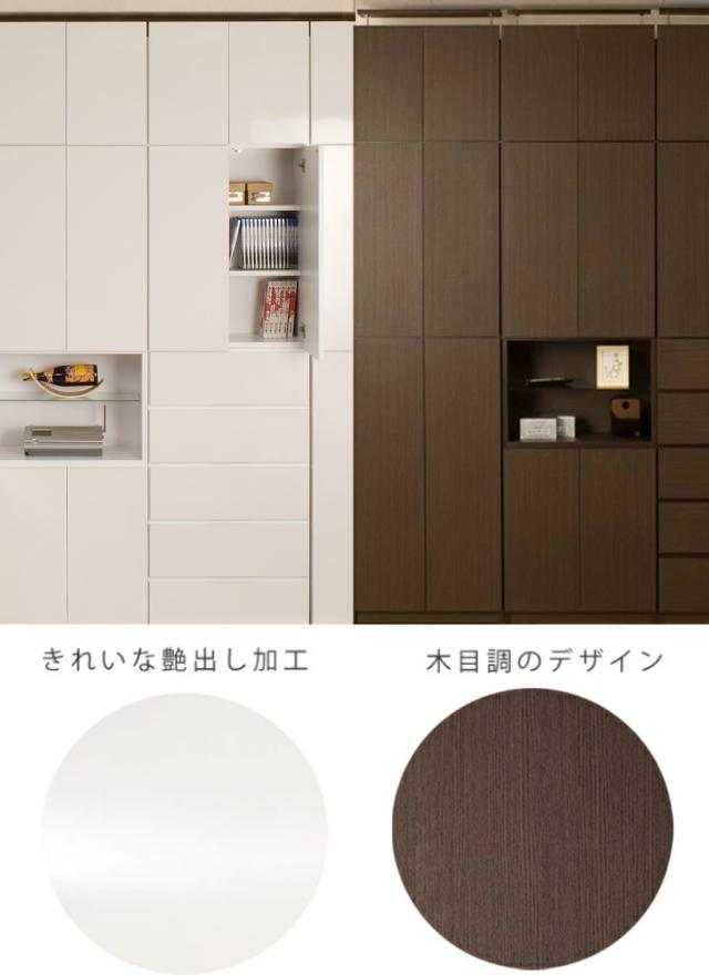表面に艶出し加工が施され、美しく清潔感のあるホワイト。天然木のようなリアルな木目調で落ち着いた印象のダークブラウン。どちらも高級感がありモダンな雰囲気で、お部屋に合わせやすいカラーです。
