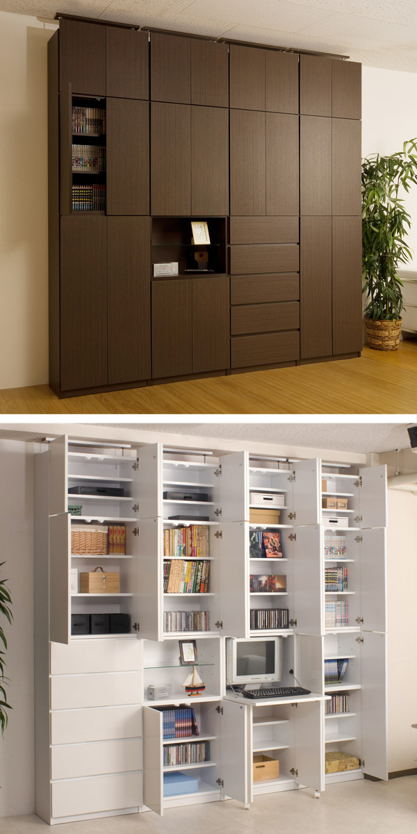 見せる、隠すを兼ねたシンプルモダン壁面収納シリーズ