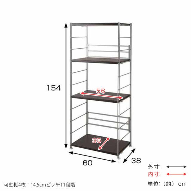 オープンラック 頑丈棚 幅60高さ154cm ( ラック スチールラック 収納 棚 日本製 本棚 シェルフ 飾り棚 強度 頑丈 キッチン リビング収納 ホワイト ナチュラル ダークブラウン )