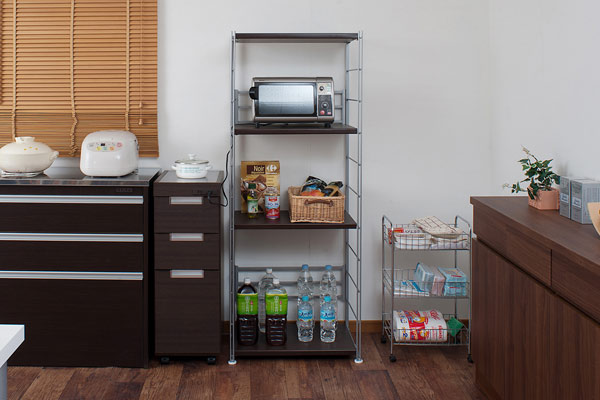 飾り棚的な役割はもちろん、強度があるので、書籍のような重さのある物も置くことができます。キッチンに設置して、食器類や家電製品などを収納していただくのもおすすめです。扉がないことで物の出し入れがスムーズで、食品のストックも一目瞭然、目当ての物をすぐに見つけることができます。