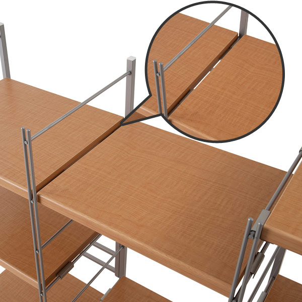 ワイドに使える通常の棚板は段違いになる物が多いですが、このラックは同じ高さに連結することができるので用途も広がります。