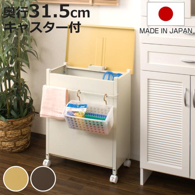 | サイズ | 約 幅51×奥行31.5×高さ66(cm) バー含む奥行 約33.5cm 高さはキャスター含むcm 収納部内寸:(約)幅45×奥行21×高さ54cm カゴ内寸:(約)幅27×奥行13×高さ13cm |