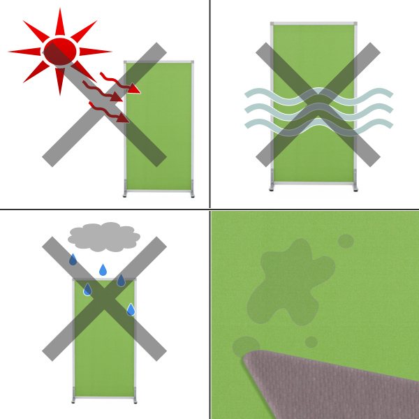 クロス張り、フェルトタイプのスクリーンをご使用の際は変形・変色・腐食防止のため以下の点にご注意ください。