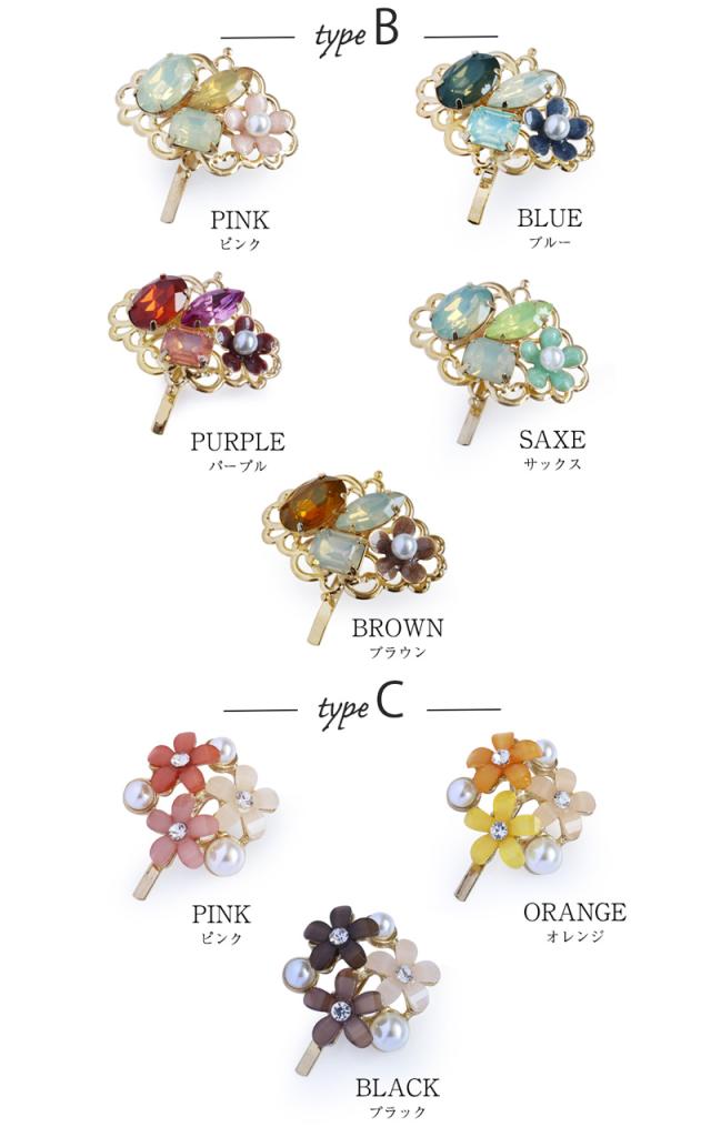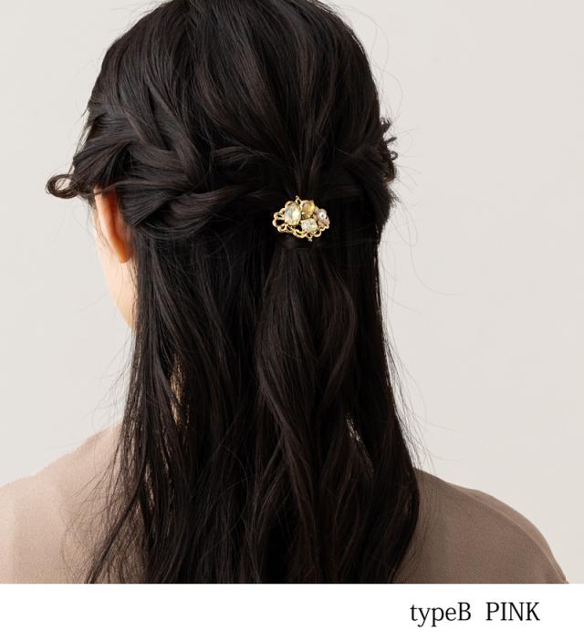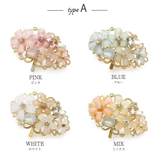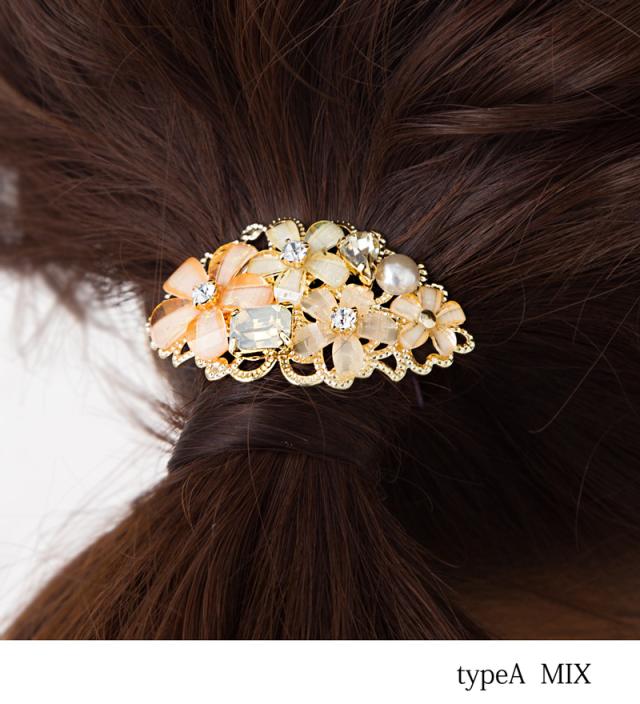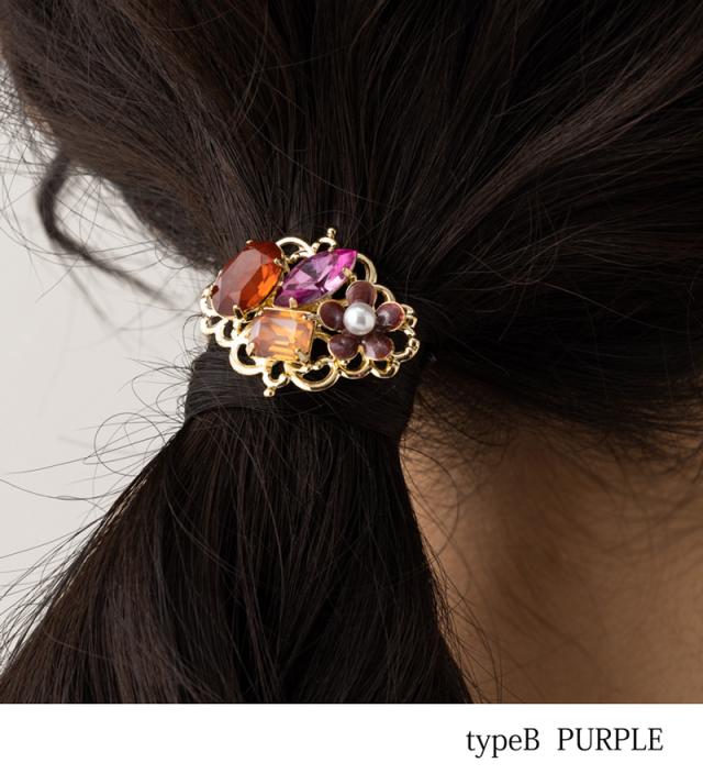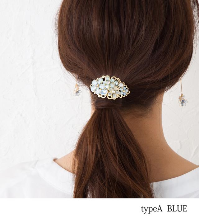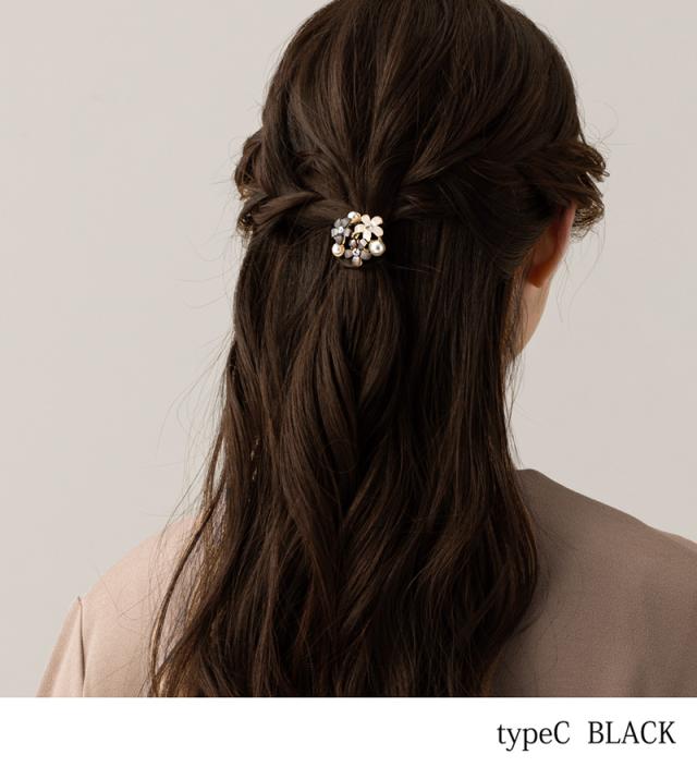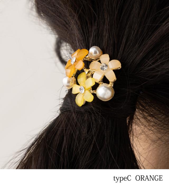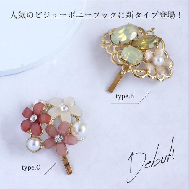 フラワービジュー ポニーフック ヘアアクセ レディース 立体 ストーン パール ポニーテール