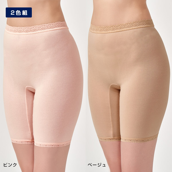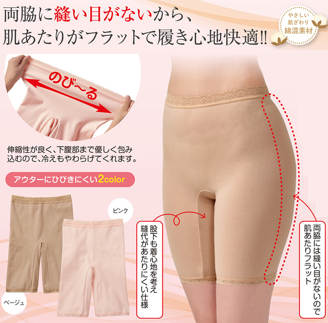 両脇に縫い目がない丸編5分丈ボトム 2色組(ピンク・ベージュ) M・L・LL【女性用パンスト】