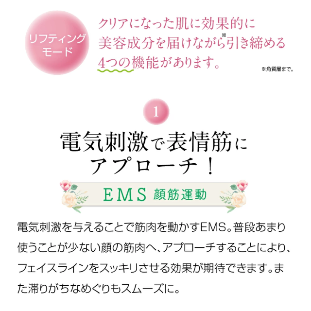 美容成分を導入しながら、キュッと引き締めるモードです。(※角質層まで)
