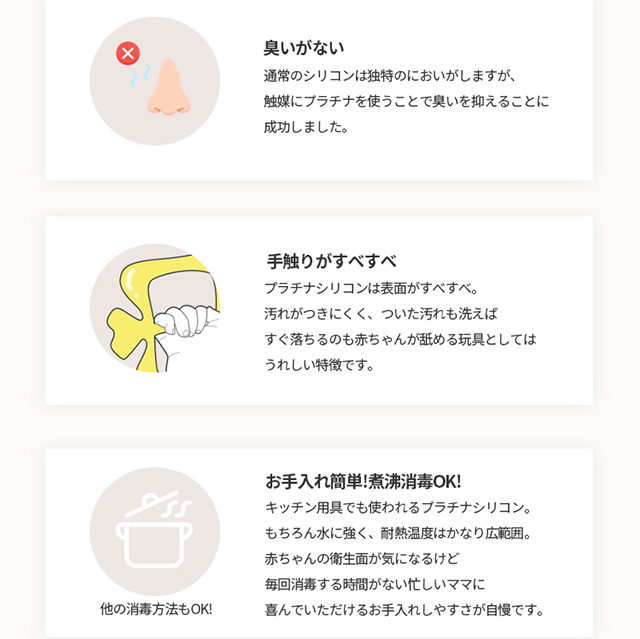 素材は安心安全のプラチナシリコン。