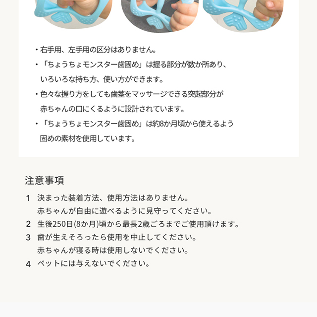 「ちょうちょモンスター歯固め」は決まった遊び方がありません。