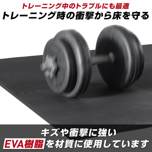 キズや衝撃に強いEVA樹脂を使用しているので、トレーニング時の衝撃から床を守ります。