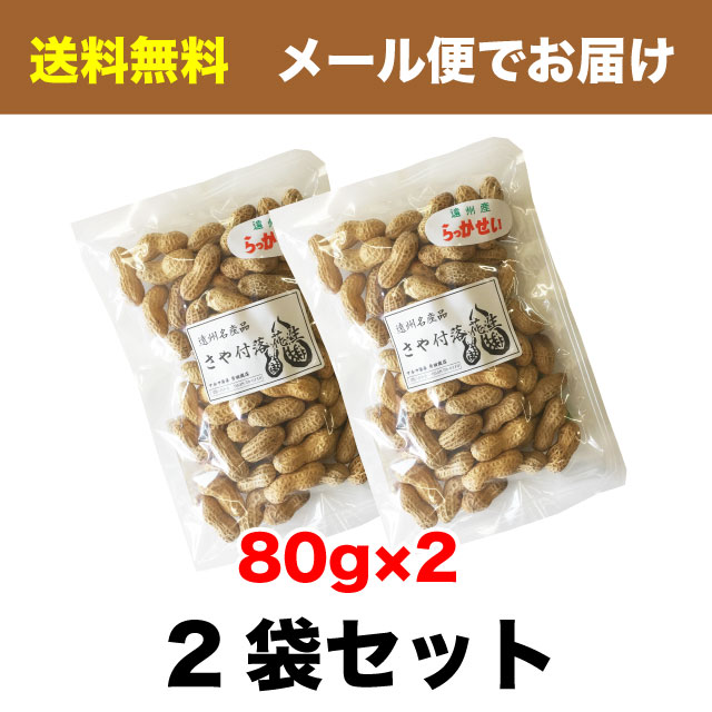 落花生 ピーナッツ 160g (80g×2袋) サヤ付き おつまみ 豆菓子 国産 希少な静岡遠州産 素煎り 送料無料