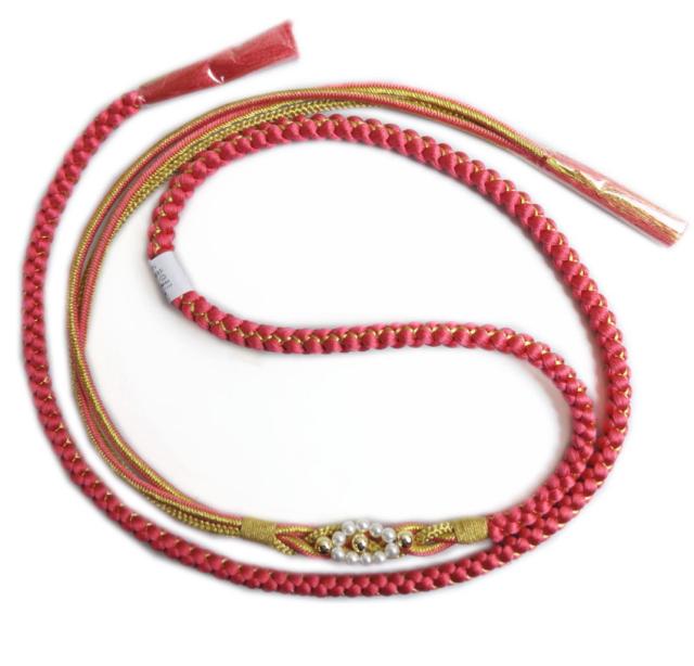 帯締め 帯〆 パール飾り付 先割れ 正絹 ピンク色金 振袖用 成人式 着物 振袖用