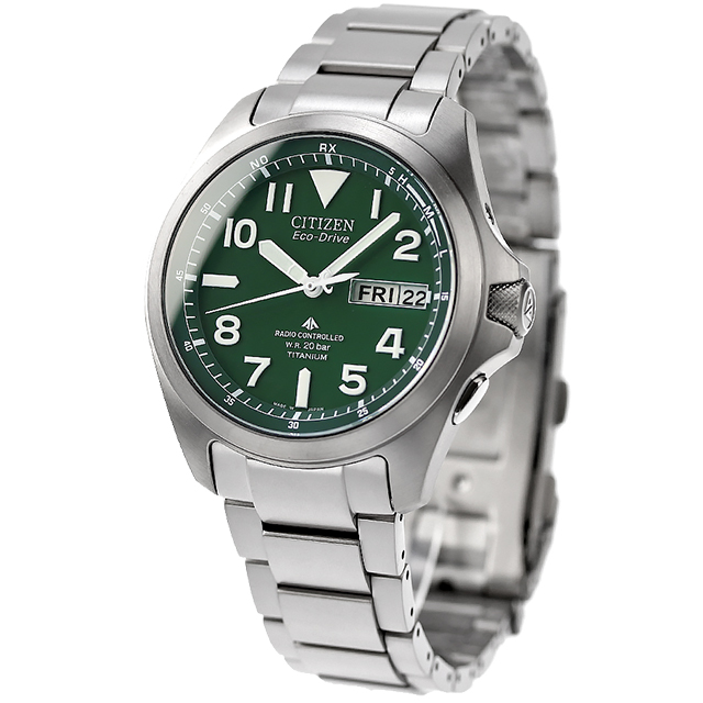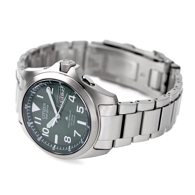 正規品 7年保証キャンペーン 送料無料 シチズン プロマスター LANDシリーズ エコ・ドライブ電波時計 チタン 電波ソーラー メンズ 腕時計 PMD56-2951 CITIZEN PROMASTER LAND SERIES アナログ グリーン ◆プロマスターにディスク式曜日表示機能搭載のモデルが登場。通常の切り替え時間よりも短時間での表示送りが可能に。素材には、軽く、着けやすいチタンを採用。シンプルかつ高級感のあるデザインはスーツスタイル、ビジネスなど様々なシーンで活躍します。誕生日や記念日などのプレゼントにもおすすめです。