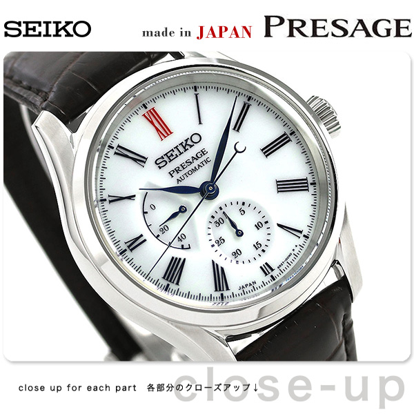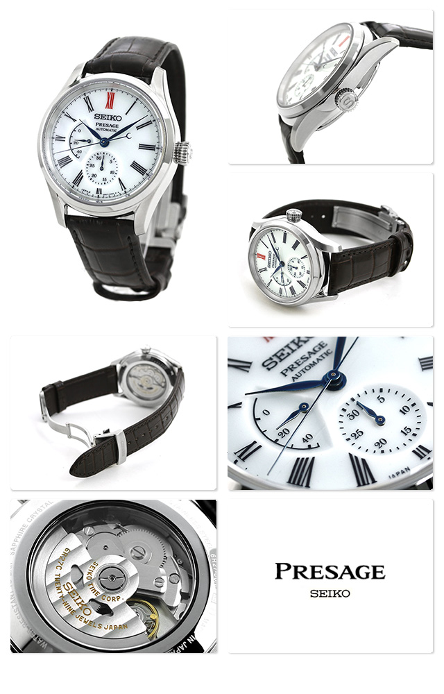 正規品 7年保証キャンペーン 送料無料 セイコー メカニカル プレザージュ プレステージライン 有田焼ダイヤル コアショップ専用モデル パワーリザーブ 日本製 自動巻き メンズ 腕時計 SARW049 SEIKO Mechanical PRESAGE アナログ ホワイト×ダークブラウン 革ベルト ◆日本の伝統技術を継承した「職人モデル」から、匠の技でしか表現できない「有田焼」が登場。磁器特有の艶やかな立体感は、有田焼の伝統と先人の熱意、革新の高強度化技術を組み合わせて実現。ダイヤル本体を特別な技法で立体的に造形し、釉薬で表面を艶やかに仕上げました。さらに、有田焼の原点である「柞灰/いすばい」と呼ばれる青みがかった白を採用。また、透き通るような青白いダイヤルに施された、絵付けを連想させる赤のインデックスは、国産初の腕時計「ローレル」の意匠。バンドには高級感溢れるクロコダイルを採用。美しさを余すところなく堪能できます。 発売日:2019年9月発売 機械式腕時計
