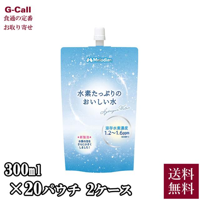 メロディアン 水素たっぷりのおいしい水 300ml 20パウチ 2ケース 送料無料 水素水 高濃度 アルミパウチ 水 ドリンク マイクロナノバブル ウルトラファインミスト