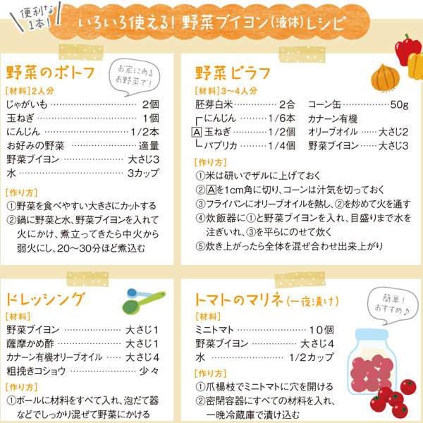 | 人気のオーサワの野菜ブイヨンに大容量サイズが新登場!砂糖・動物性原料不使用で、スープはもちろん、ピラフ、カレー、シチューなど様々な料理にお使いいただけます。毎日の食事にぜひお役立てください♪ |