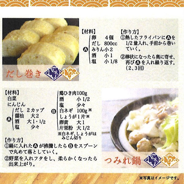 お吸い物、味噌汁、鍋物、煮物など