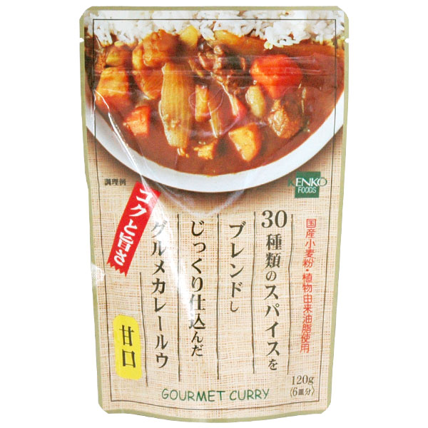 グルメカレーは、コクとまろやかさを大切に、30種類のスパイスをブレンドし、じっくり仕込んだ甘口タイプのカレールウです。