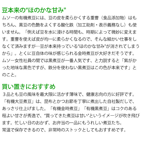 【関連ワード】クロマメ,黒豆,くろまめ,煮物[有機煮豆]有機豆,有機まめ,有機にまめ,有機煮まめ,オーガニックの煮豆,オーガニックにまめ,オーガニック煮まめ[有機]有機JAS認定,オーガニック,JAS認定,オーガニック栽培,有機栽培[販売]ムソー株式会社