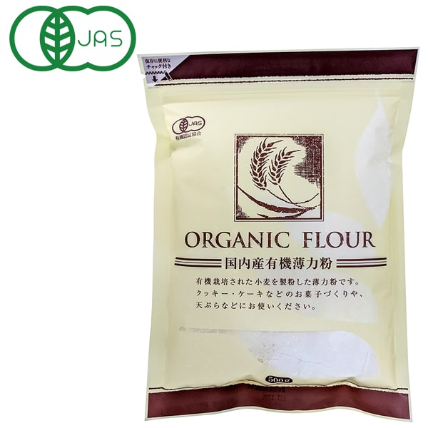 国内で有機栽培された小麦を原料とした、有機JAS認証の薄力粉