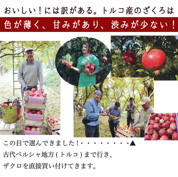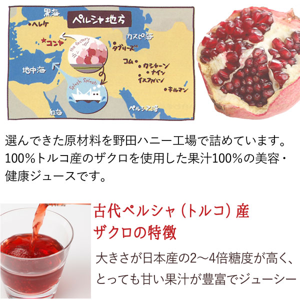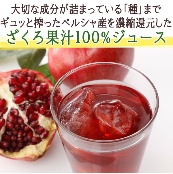 ペルシャ産(トルコ)のざくろを濃縮還元した果汁100%のジュースです。