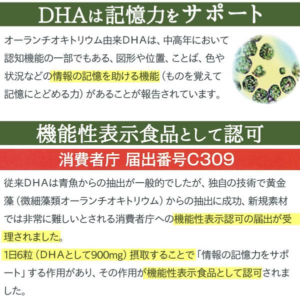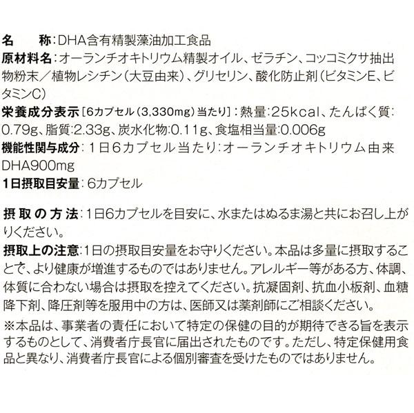 藻類DHAカプセル・プラスには藻類(オーランチオキトリウム)由来のドコサヘキサエン酸(DHA)が含有されています。1日6粒(DHAとして900mg)摂取することで「情報の記憶力をサポート」する作用があり、その作用が機能性表示食品として認められ、届出が受理されました。