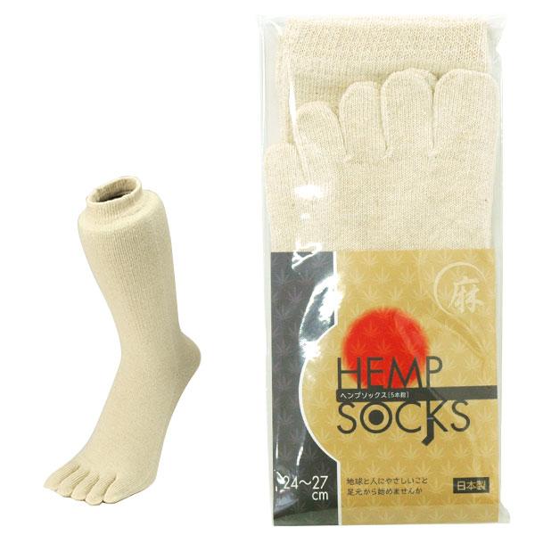 【EMソックス】5本指ソックス 紳士ヘンプ・ナチュラル(生成) 24〜27cm【杉山ニット工業】
