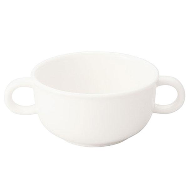 両手に取っ手のついた可愛いデザインのマグカップ。スープや離乳食用にどうぞ。