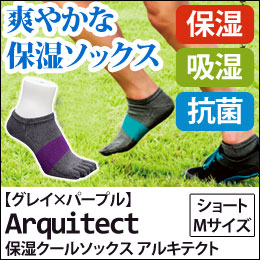 5本指ソックス アルキテクト 021 クール ショート Mサイズ(グレイ×パープル)【ワールドグローブ】【メール便送料無料の場合代引・同梱不可】