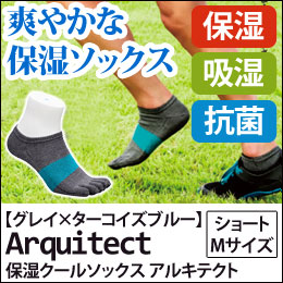 5本指ソックス アルキテクト 021 クール ショート Mサイズ(グレイ×ターコイズブルー)【ワールドグローブ】【メール便送料無料の場合代引・同梱不可】