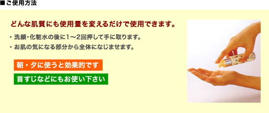 1.洗顔、化粧水の後に1〜2回押して手に取ります。