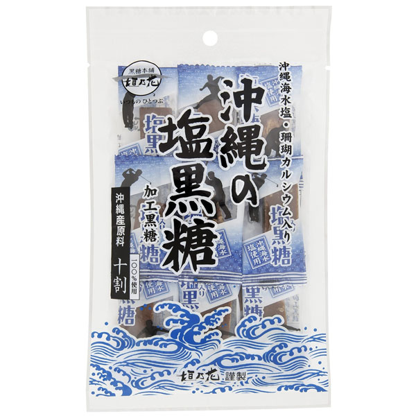 沖縄のサトウキビから取れた粗糖・黒糖・糖蜜に沖縄海水塩とサンゴカルシウムを加えた黒糖菓子です。塩味と黒糖の風味の調和が取れていて、仕事後やスポーツ後の塩分・糖分補給に最適です。