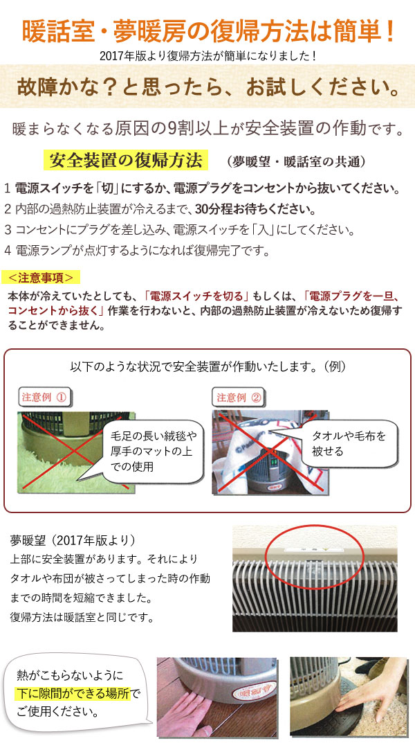 ![]() ![]() ![]() ![]() ![]() ![]() ![]() ![]() ![]() ![]() ![]() ![]() ![]() ![]() ![]() ![]() ![]() ![]() 遠赤外線パネルヒーター「夢暖望」は安全性にこだわった誰にでも安心して使える暖房機器です。 遠赤外線と輻射式による自然なあたたかさはまるでひなたぼっこをしているような心地よさ!しかも電気代も安く、他の暖房機器と比較しても大変お得です。 夢暖望660型は奥行き22cmで場所をとらないスリム設計。さらに、背面は全く熱くならないためぴったり壁につけて使えます。子供部屋、寝室など、あまり広くない個室での使用に最適です。400ワットでのご使用なら、朝まで点けっ放しでも電気代は1日当たり90円程度。(約11円/時間) <リニューアル情報:2025年9月>柵固定用のネジが二箇所から一箇所に変更となりました。 従来よりガードを外してのお手入れがし易くなります。