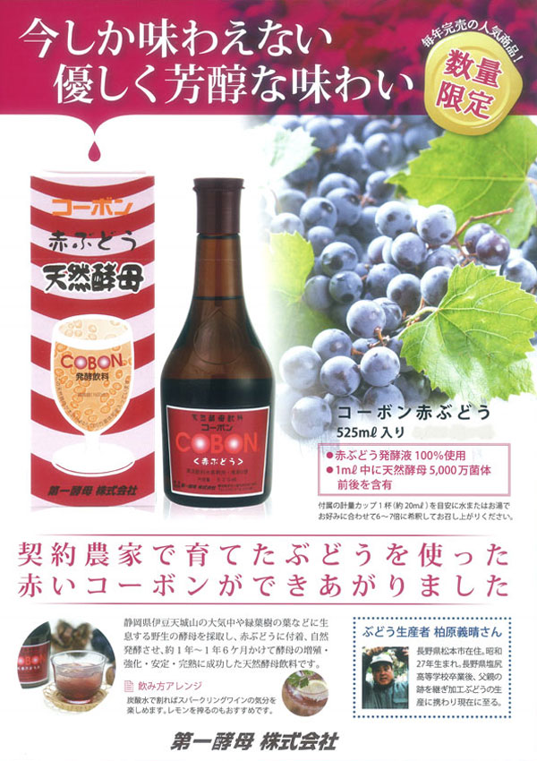 【関連ワード】コーボン,こうぼん,酵母,ぶどう,葡萄,赤葡萄,赤ブドウ