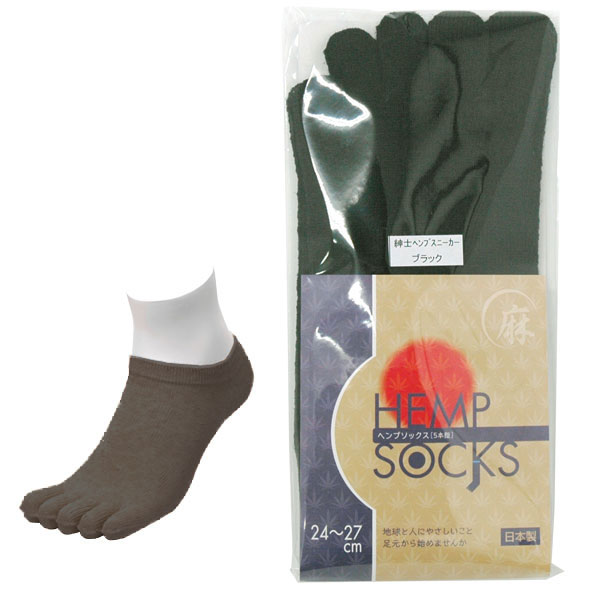 【EMソックス】5本指ソックス 紳士ヘンプスニーカーソックス ブラック(24〜26cm)【杉山ニット工業】