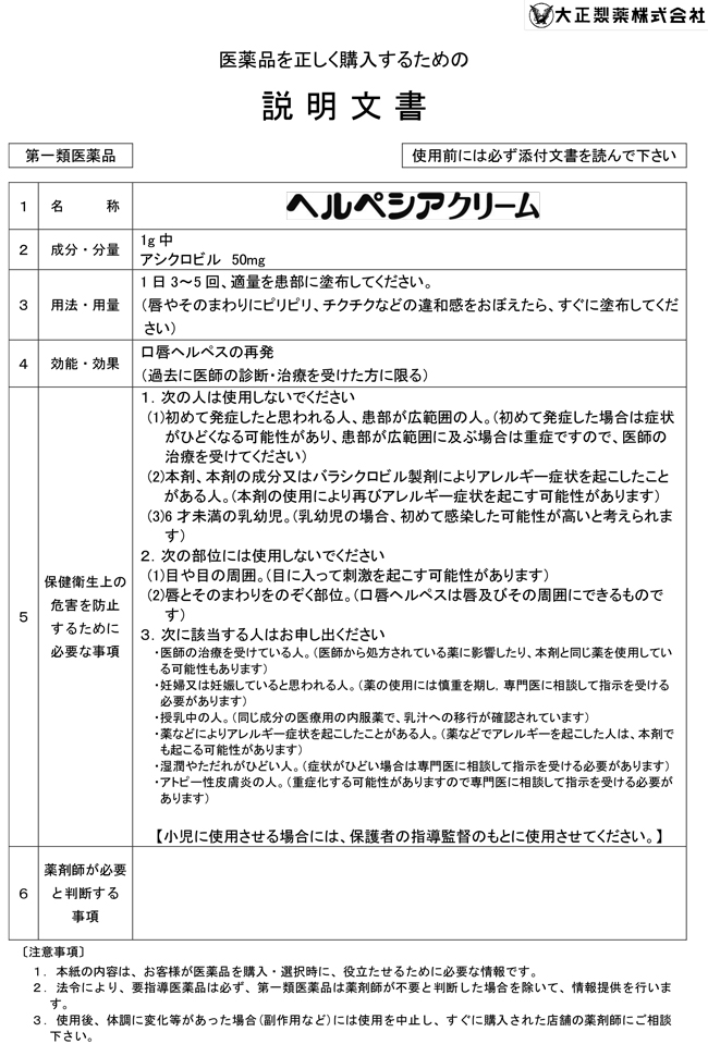 【第1類医薬品】 ヘルペシアクリーム 2g 口唇ヘルペス ※セルフメディケーション税制対象商品