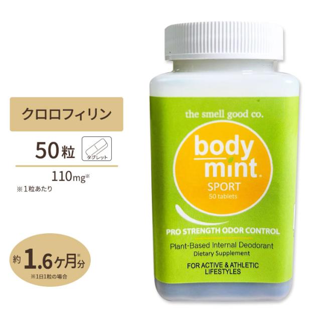 【メーカーによりデザイン、成分内容等に変更がある場合がございます。】大人気のエチケットサプリにスポーツ用が登場♪「ボディミントスポーツ」は、【デオドラント+マウスウォッシュ+足の臭いケア】を凝縮した、飲むだけの簡単サプリメント!野菜や海藻等の光合成を行う生物の緑色色素「クロロフィル」が、お腹の中から臭いの元をケアします! ▼メーカーBodyMint-USA (生産国:アメリカ)▼成分(1粒中)クロロフィリン(SCC)110mg ナトリウム6.6mg 銅4.4mg ※小麦、グルテン、砂糖、とうもろこし、イースト、乳製品、動物性原料は含んでおりません。 ▼飲み方食品として1日1から2粒目安▼注意※罹患中の方、医師から薬を処方されている方、妊娠中・授乳中の方、お子様のご摂取をお考えの方は、使用前に医師と相談下さい。 ※ご使用後、腹痛または下痢が起こった場合は、使用量を減らすか、ご使用をお止め下さい。※指示通りにのみご使用下さい。※便が緑がかった色になることがあります。▼形状タブレット