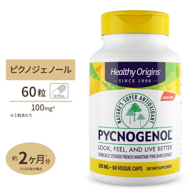 ヘルシーオリジンズ ピクノジェノール 100mg 60粒 (フランス海岸松樹皮エキス) Healthy Origins Pycnogenol 単品 セット